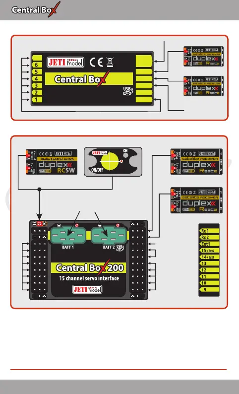 • by JETIBOX connection (directly to the Central Box or wirelessly via