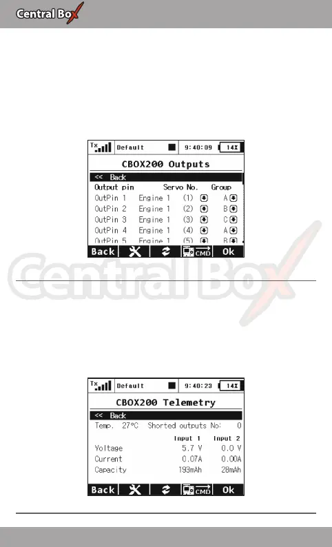• Servo No. – assigning outputs of the transmitter to the Central