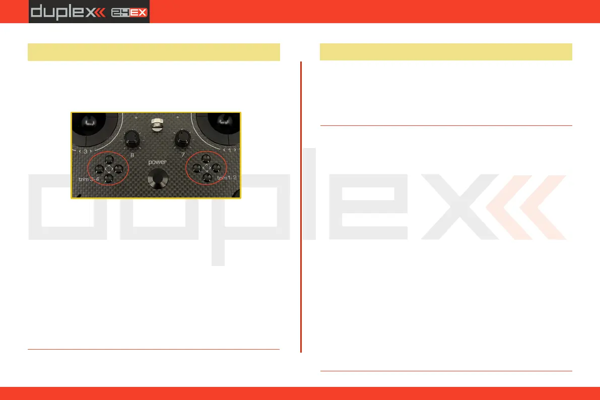 The digital trims are used for fine trimming of the flying model. When