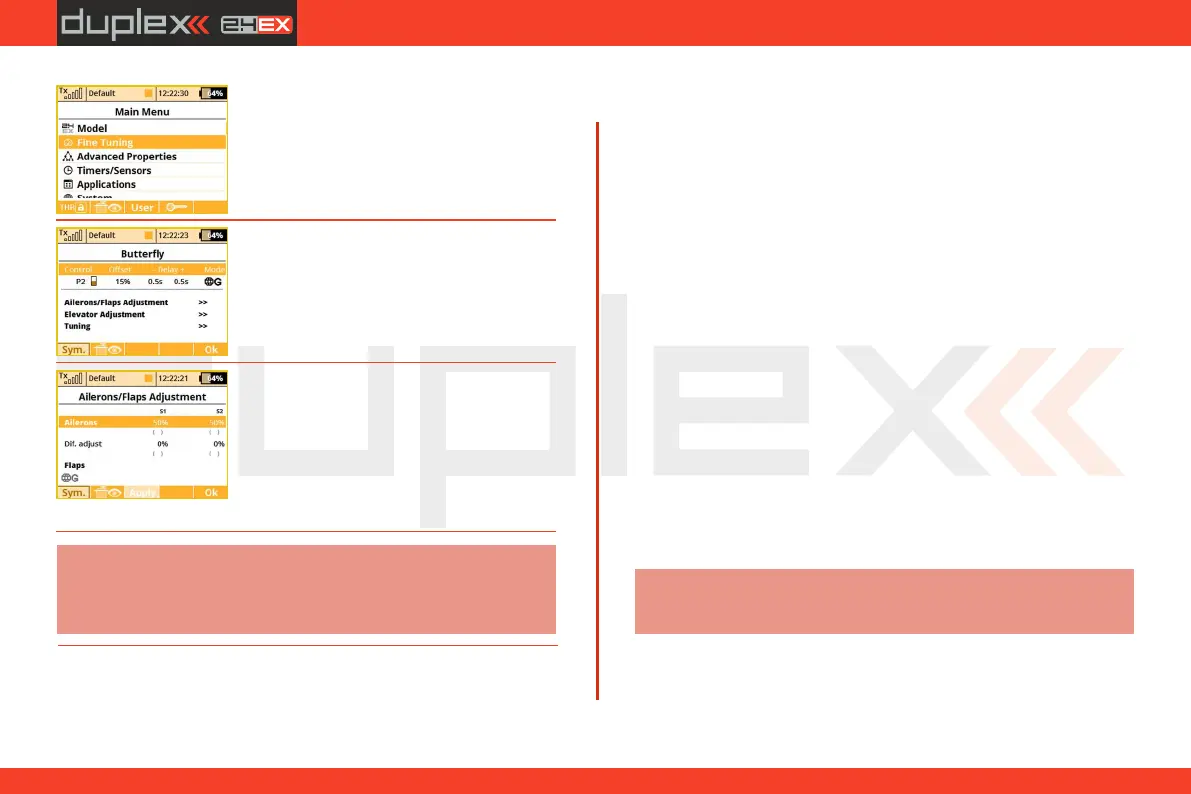 button. Select „Fine tuning“ and push the