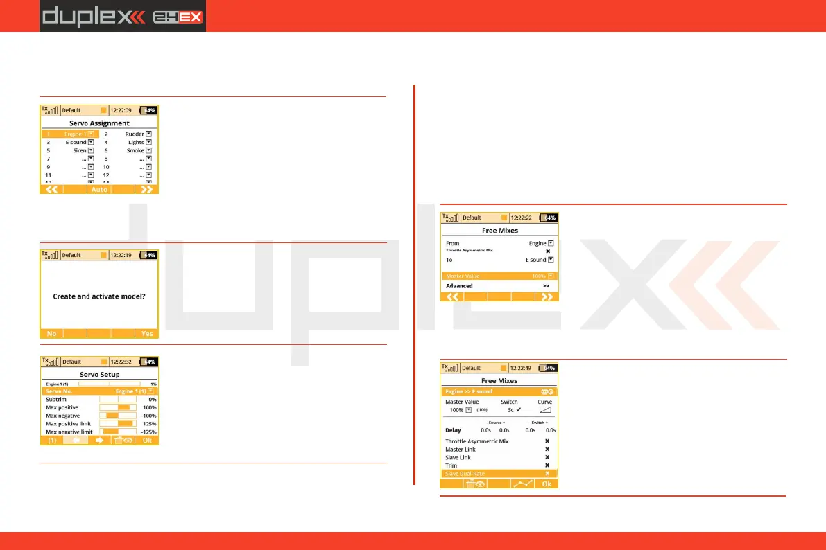 7. The "Servo assignment“ menu displays