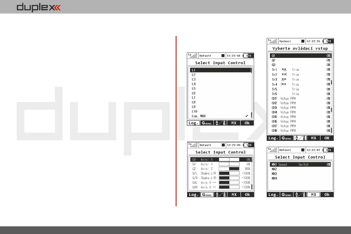 GXL, GXR Virtual controls switched on at the transmitter tilt to •