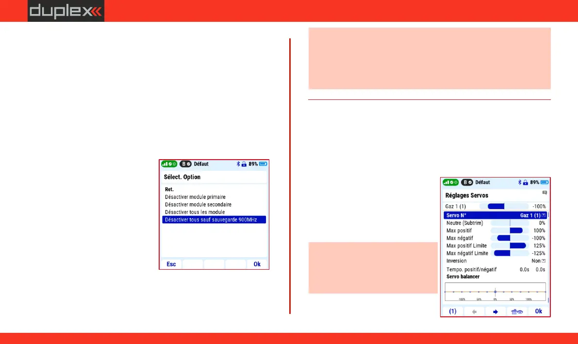 l'option „Activer 900 MHz sauvegarde” dans l'émetteur.