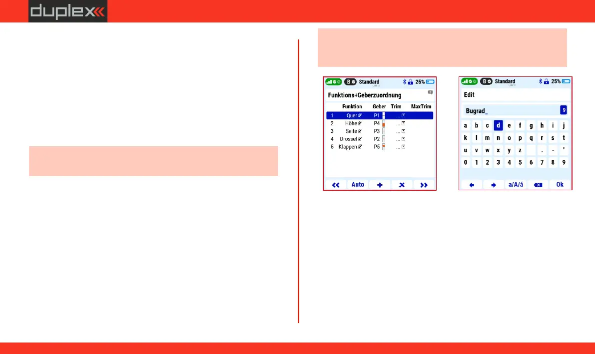 1. Wenn gewünscht kann die Servokanal Zuordnung hier geändert