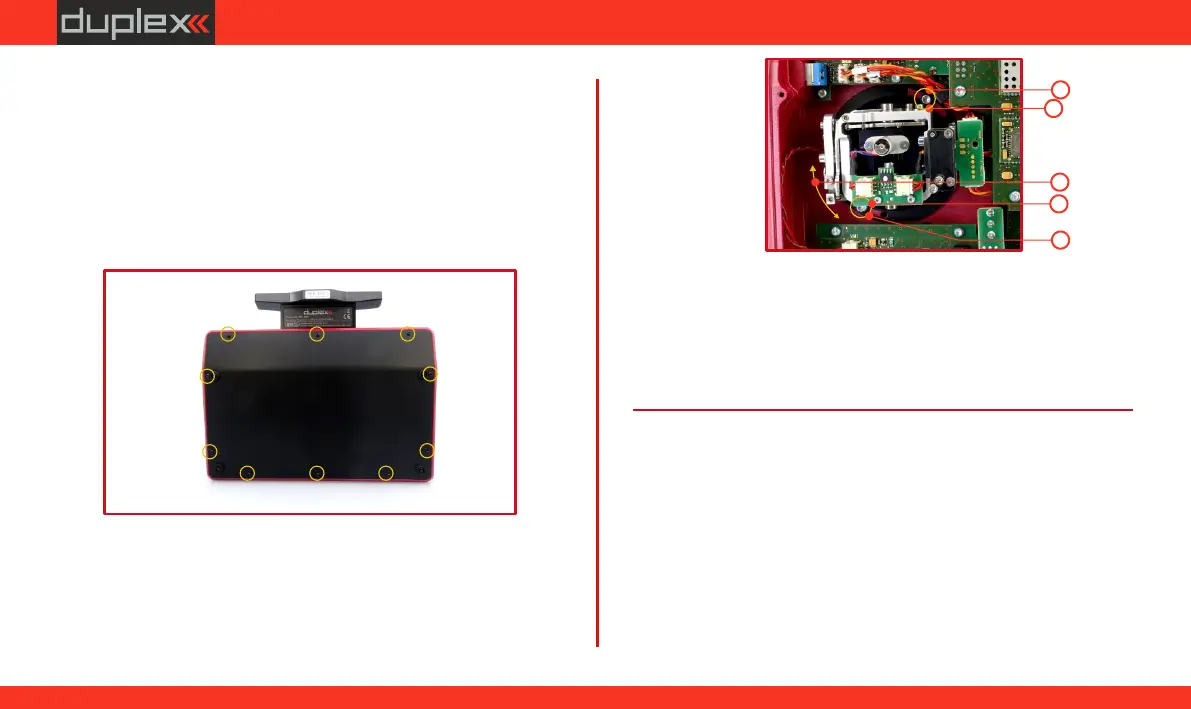 Befestigungsschrauben der hinteren Abdeckung des Senders.