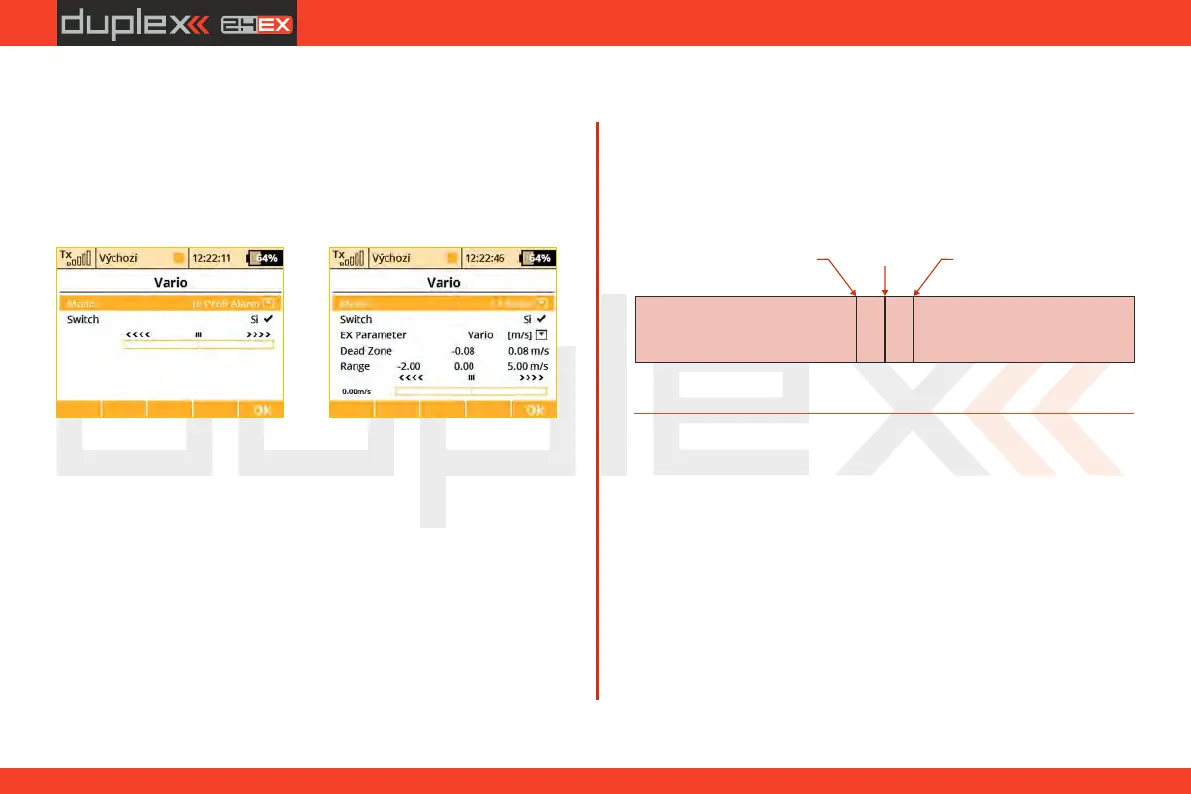 Located in: „Menu->Timers/Sensors/Vario”. There are two types of