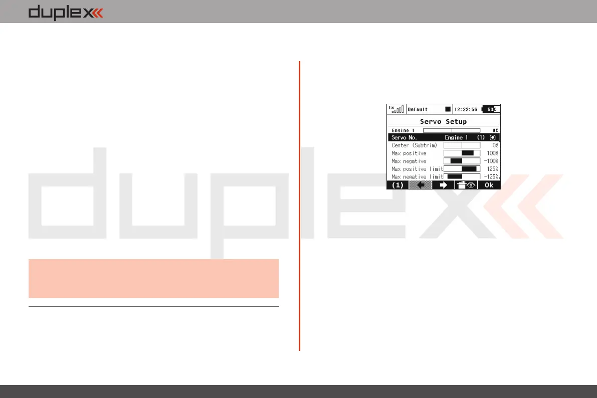automatically taken to the „Servo Setup“ menu. Your stored model