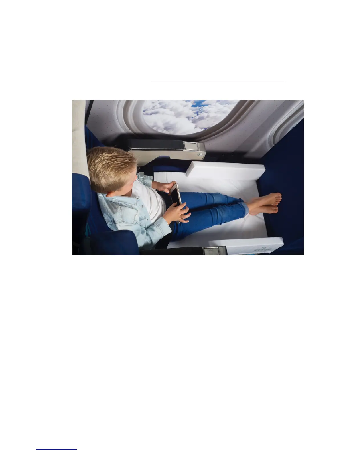 seat, with some pillows on top of it. It shall not used during taxi, takeoff, turbulence or landing. We