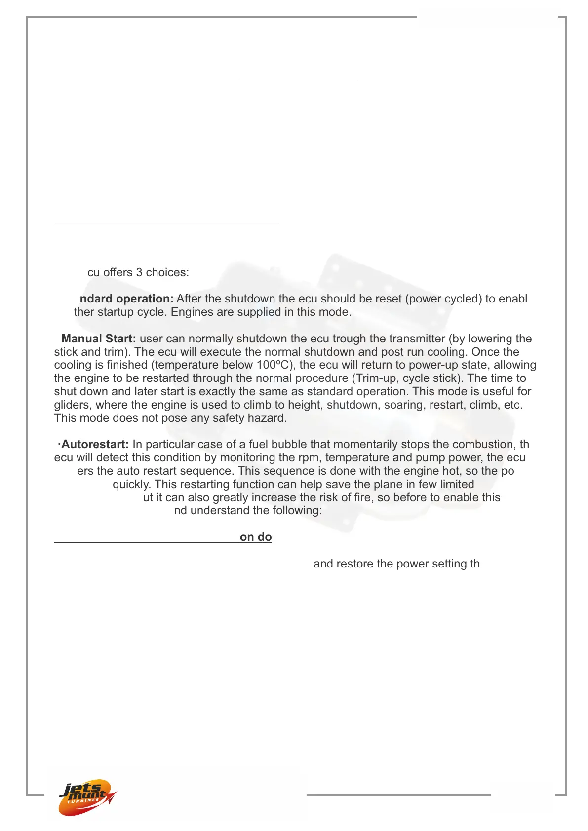 ·Manual Start: user can normally shutdown the ecu trough the transmitter (by lowering the
