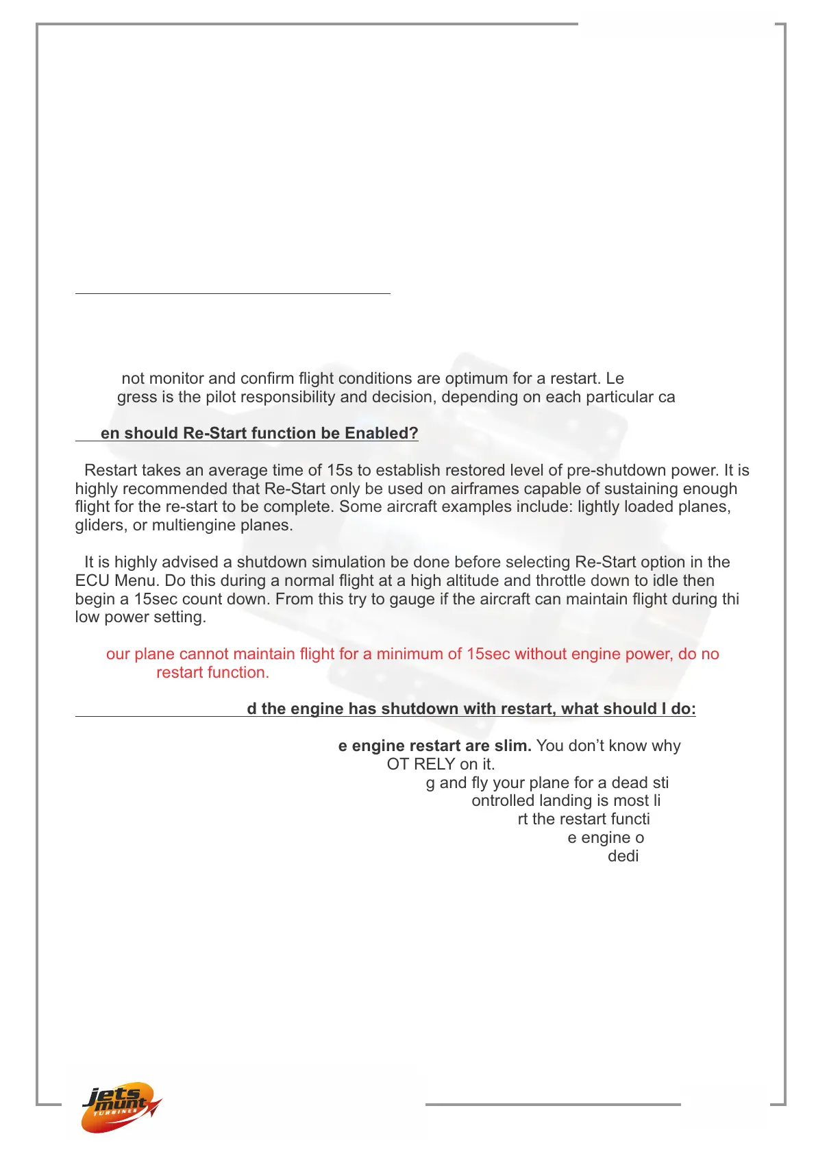 highly recommended that Re-Start only be used on airframes capable of sustaining enough