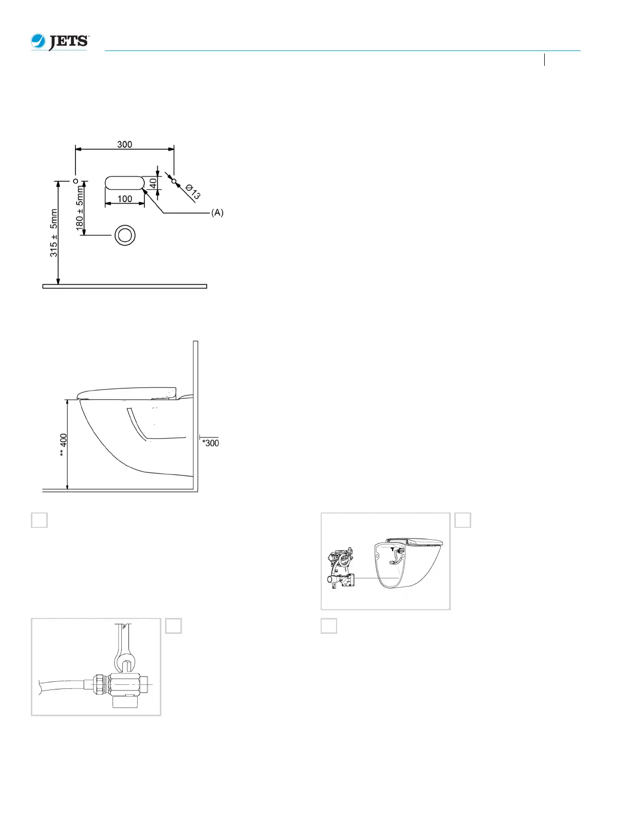 The toilet is delivered with a fastening kit aimed at installation on existing wall mounted bolts. Note that the fastening kit is not included in the Toilet