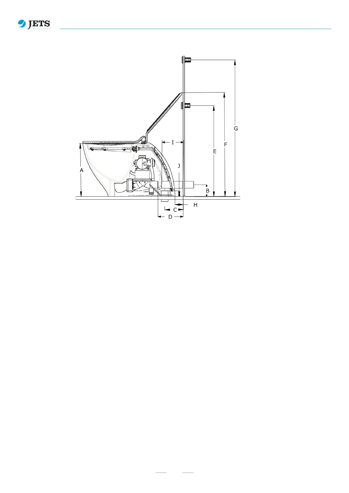 If the toilet is placed further than 40mm away from the back wall, the values of C, D, F and I will change.