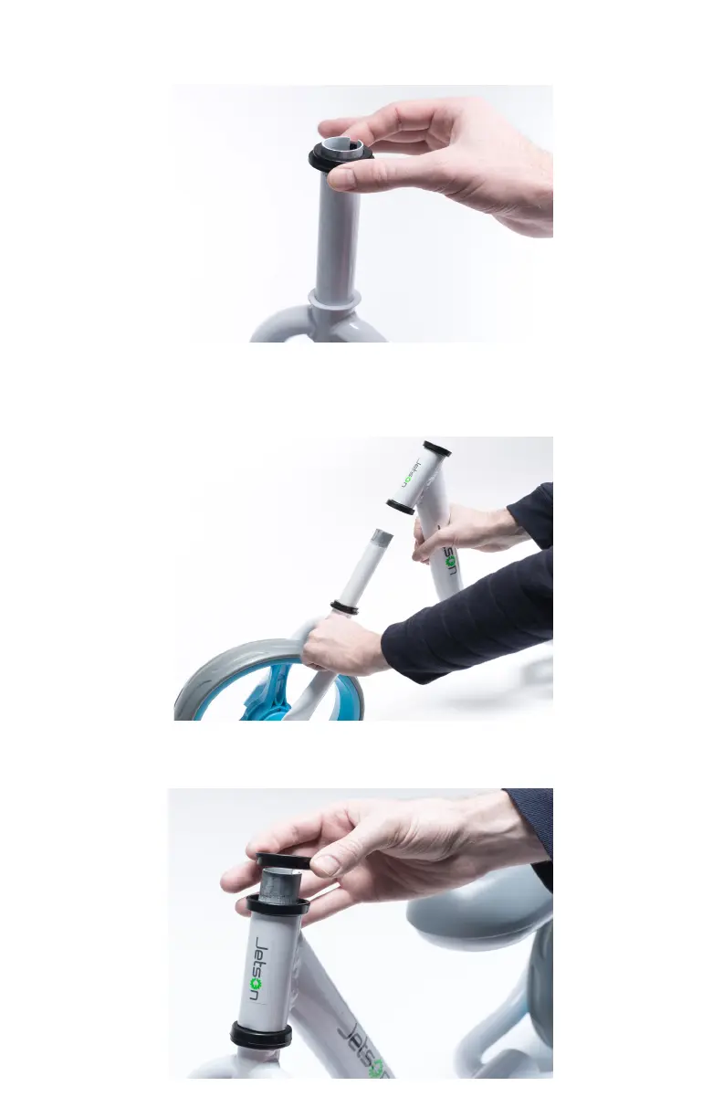 Then, slide the Front Fork through the Front Frame until it rests on