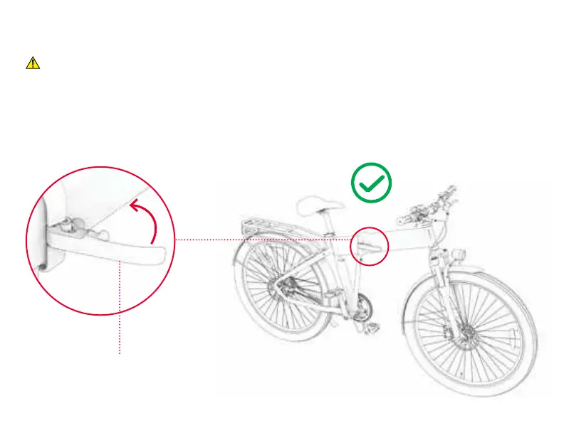 IMPORTANT : POUR VOUS ASSURER QUE LE LOQUET EST CORRECTEMENT FERMÉ ET BLOQUÉ SUR LE CADRE DU VÉLO,