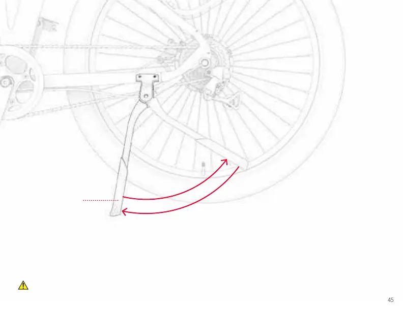 PER UTILIZZARE IL CAVALLETTO, ABBASSARLO E INCLINARE DELICATAMENTE LA BICICLETTA PER FARLA STARE IN PIEDI. PER
