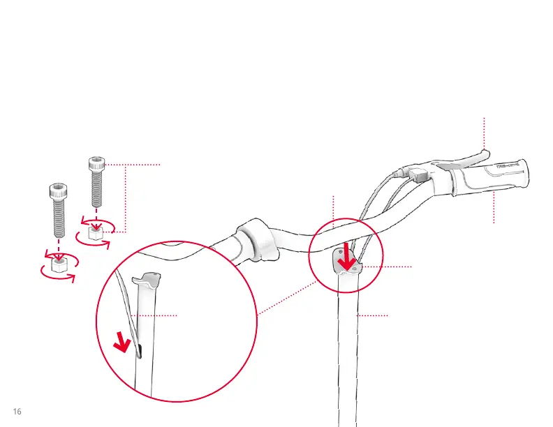 • THE HANDLEBAR IS NESTLED IN THE HANDLEBAR CLAMP BASE.