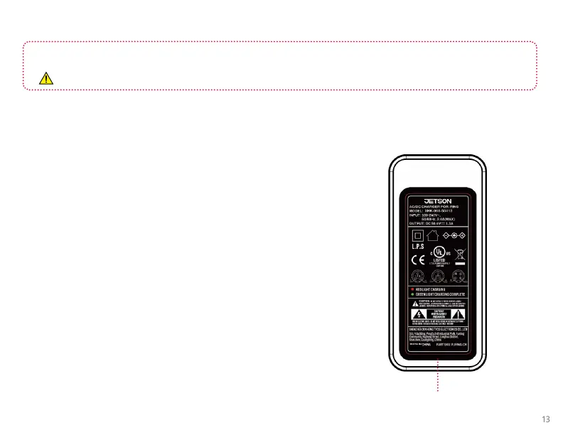 · ONLY USE THE INCLUDED CHARGER OR ONE OBTAINED DIRECTLY THROUGH JETSON LABELED WITH XHK-968-50413 OR