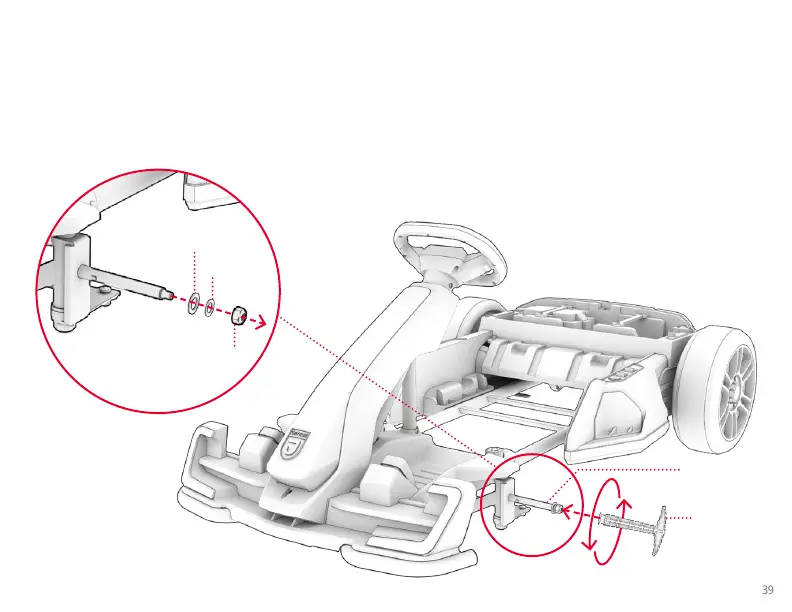 1. LOOSEN AND REMOVE THE PRE-INSTALLED AXLE NUT(SIZE M8) FROM ONE SIDE OF THE FRONT AXLE BY TWISTING IT OFF