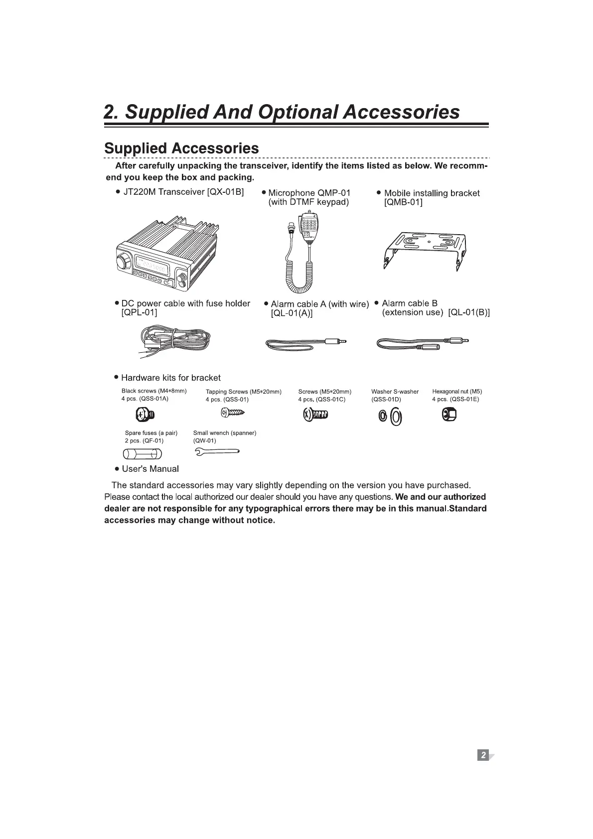JETStream JT220M - Supplied And Optional Accessories; Supplied Accessories List