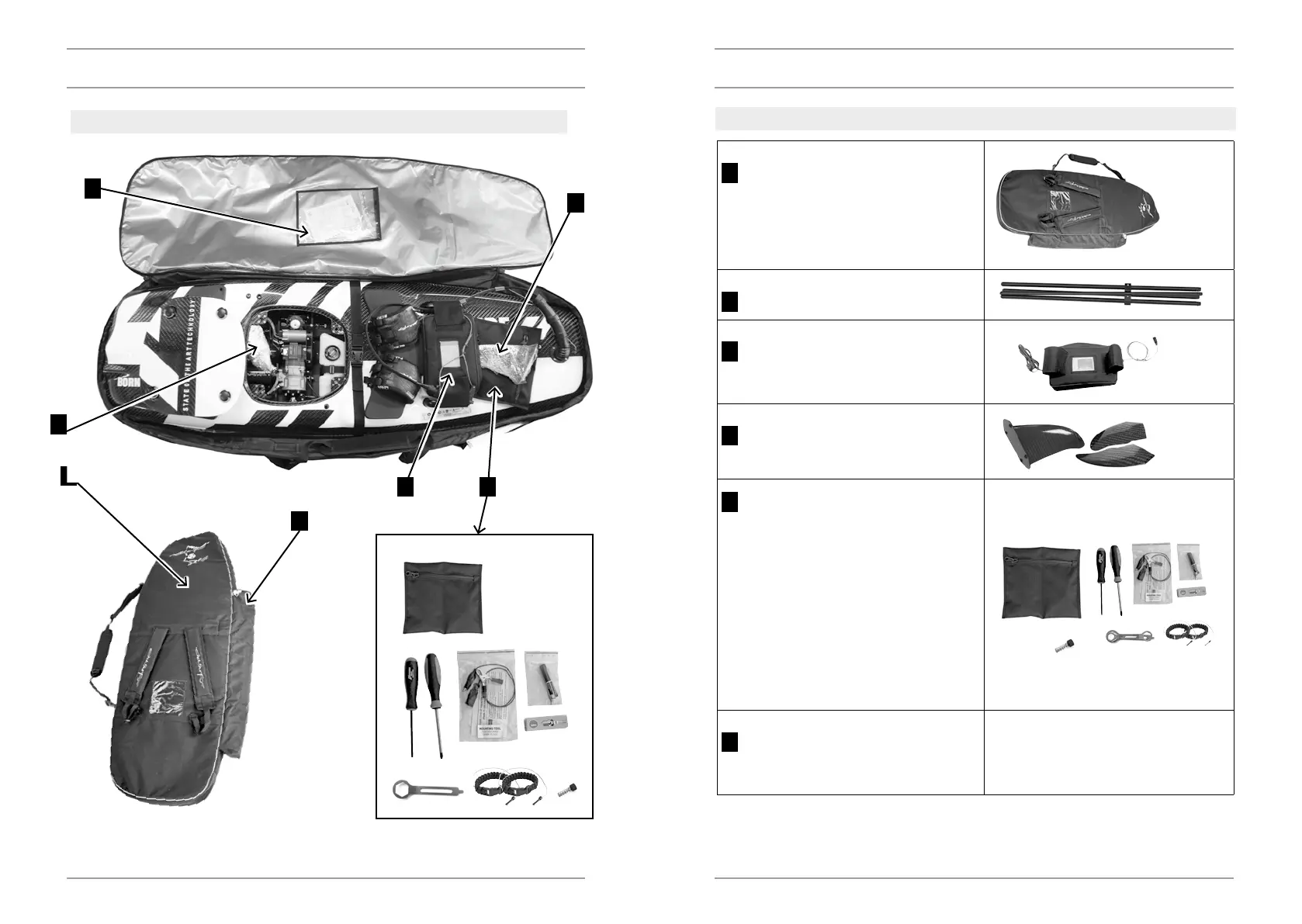 ARRANGEMENT OF JETSURF AND IT’S ACCESSORIES IN BOARD BAG