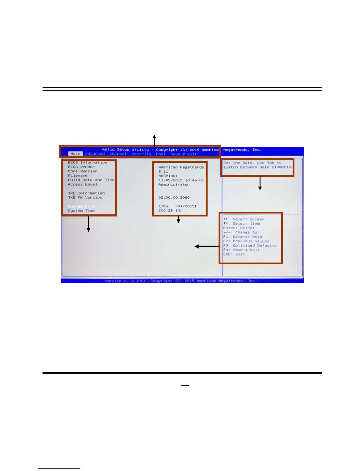 The following diagram show a general BIOS menu screen: