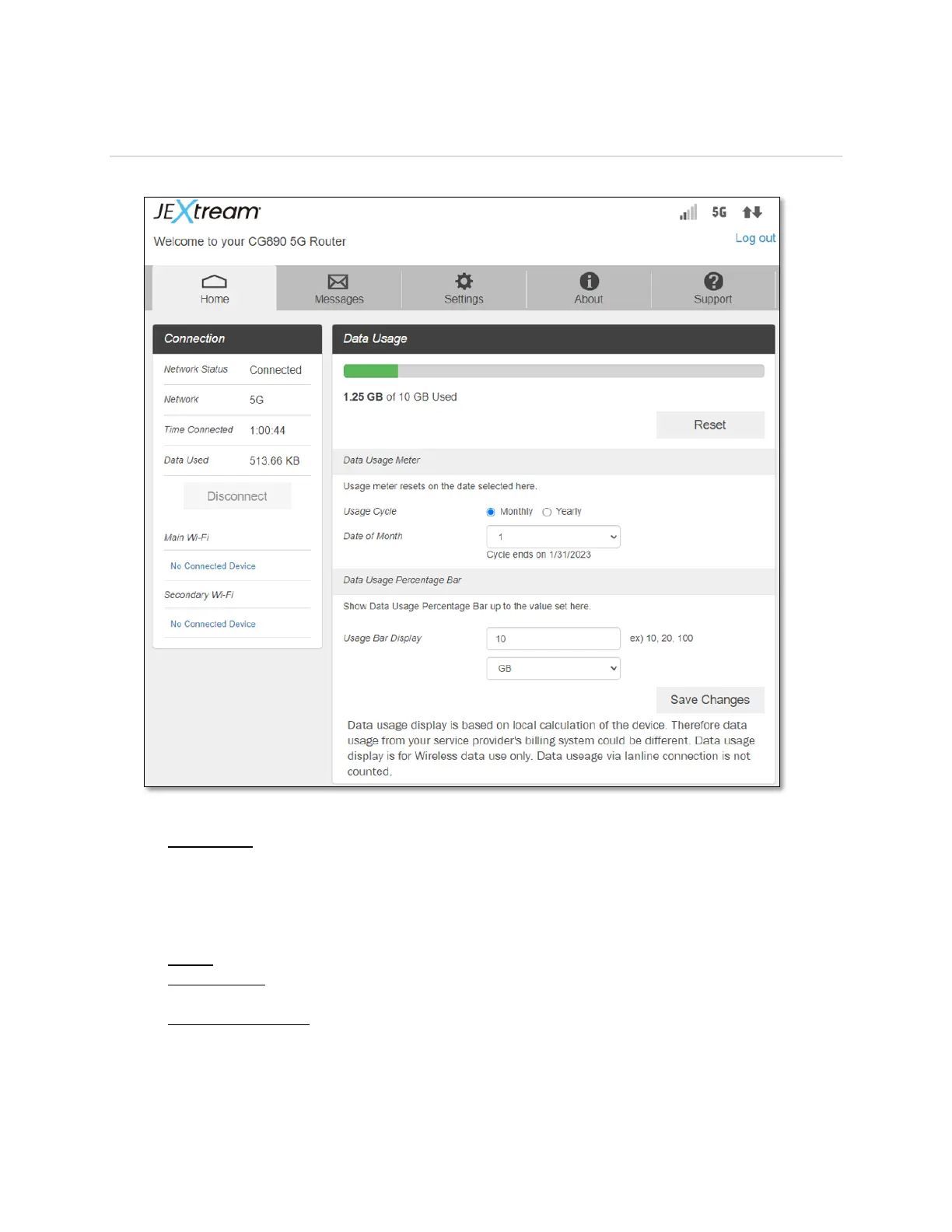 Press Save Changes to save the change made. The data usage bar will be enabled and