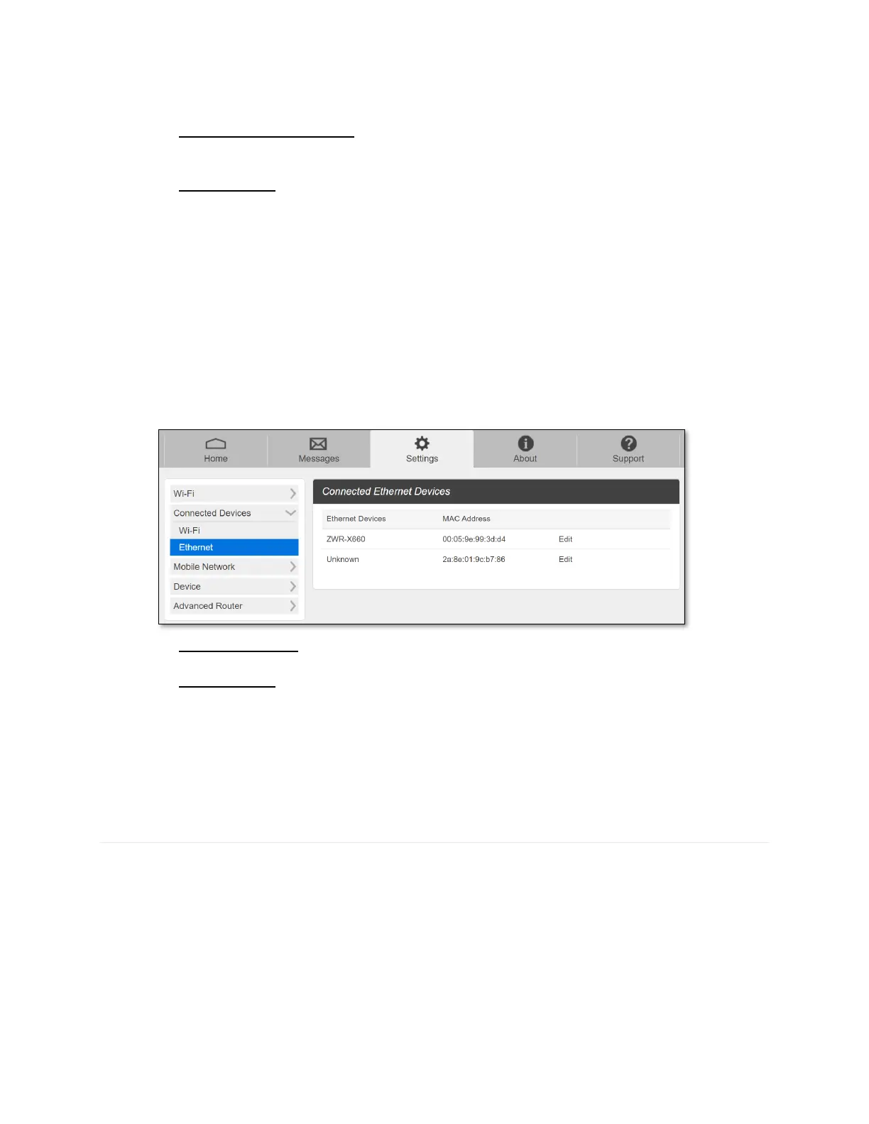 - Ethernet Devices – Names of the connected devices to the CG890 via Ethernet