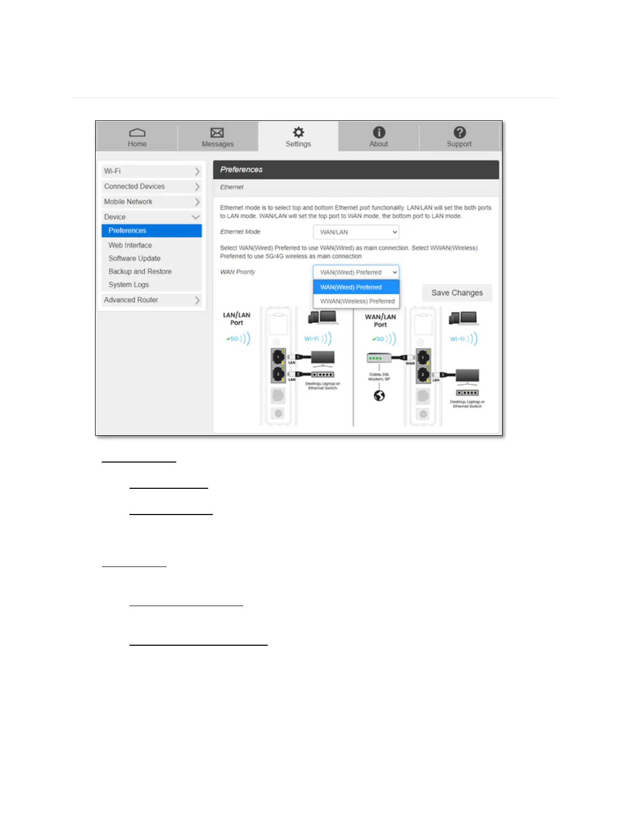 - WAN(Wired) Preferred: CG890 will provide internet connection primarily from the
