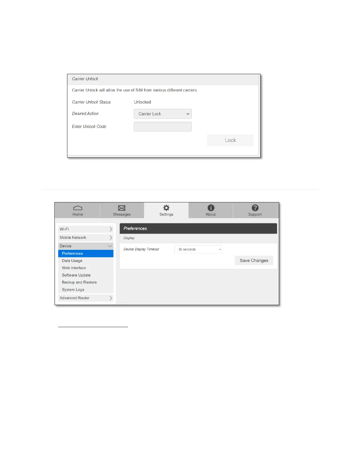 - Device Display Timeout: Select a timeout time from the drop-down list. Your RG1100