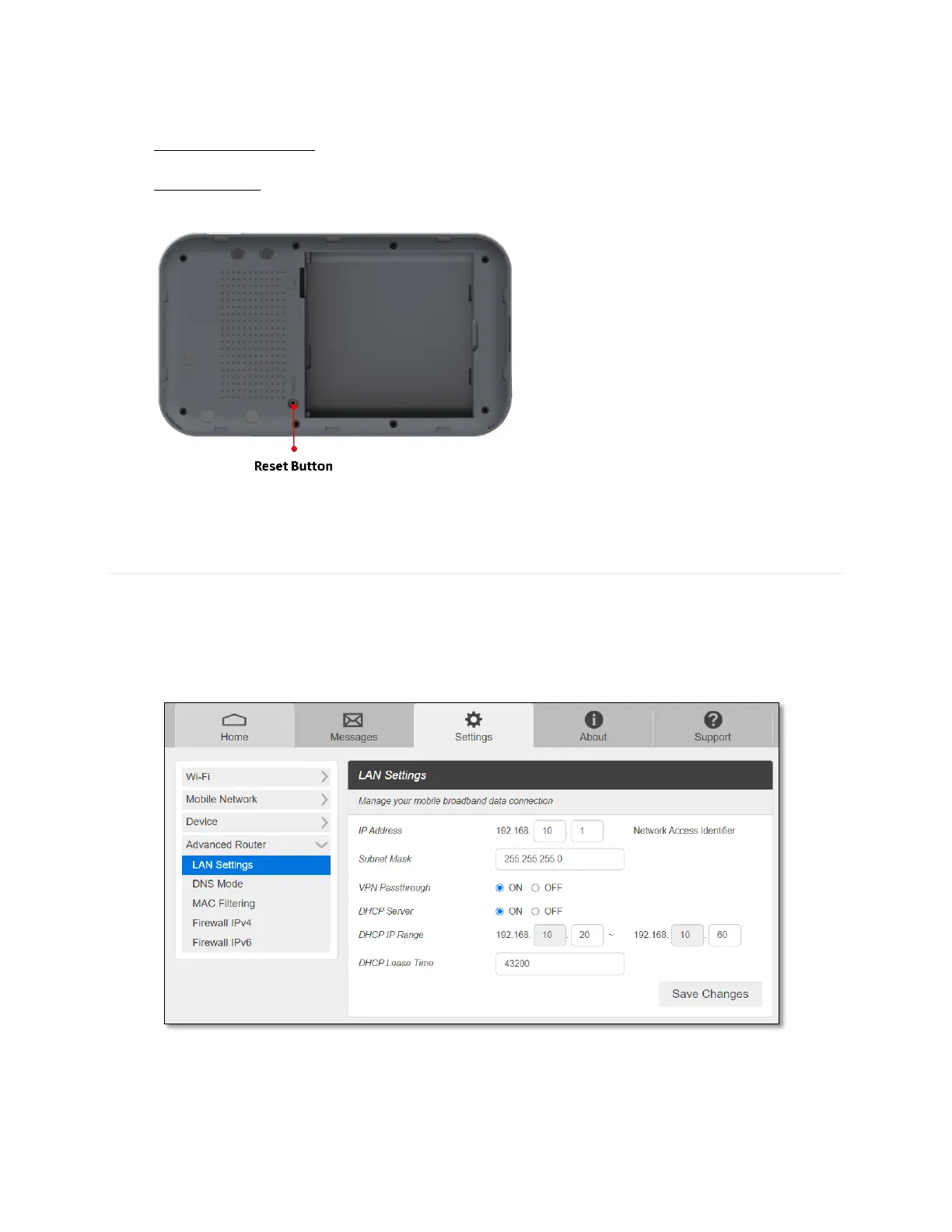From the Web UI, click Settings > Advanced Router > LAN Settings to display the router