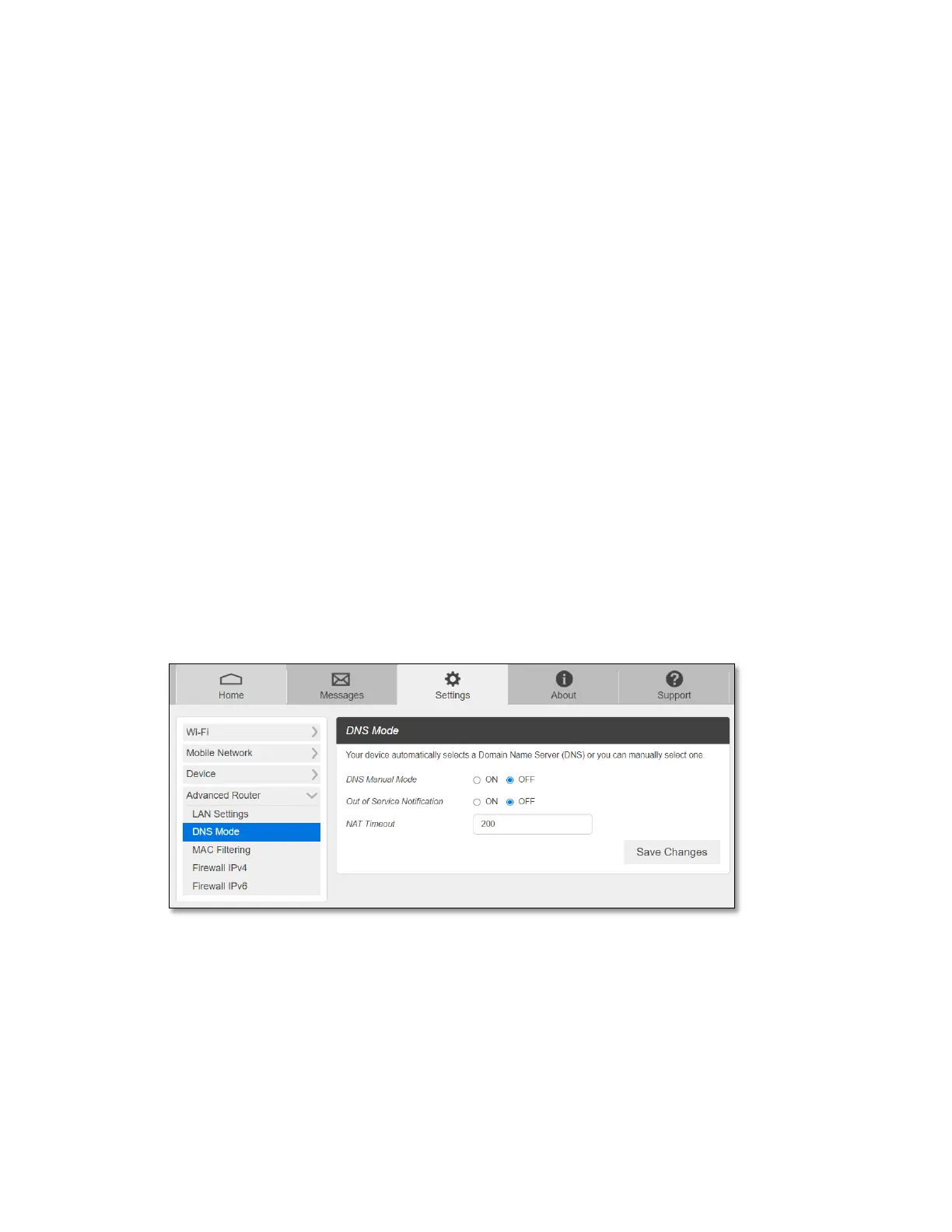 network. The DNS Mode option allows you to manually set up two DNS IP addresses.