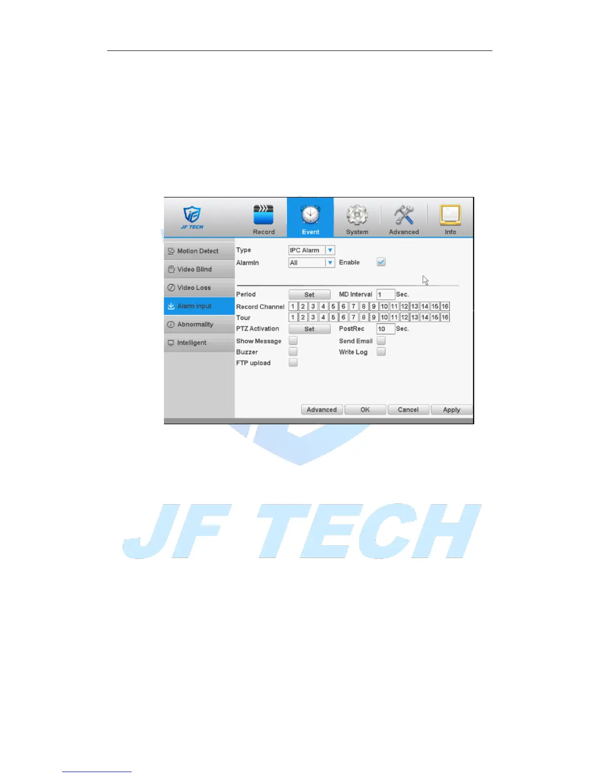 When the device gets an external alarm device alarm signal, it will start alarm function.