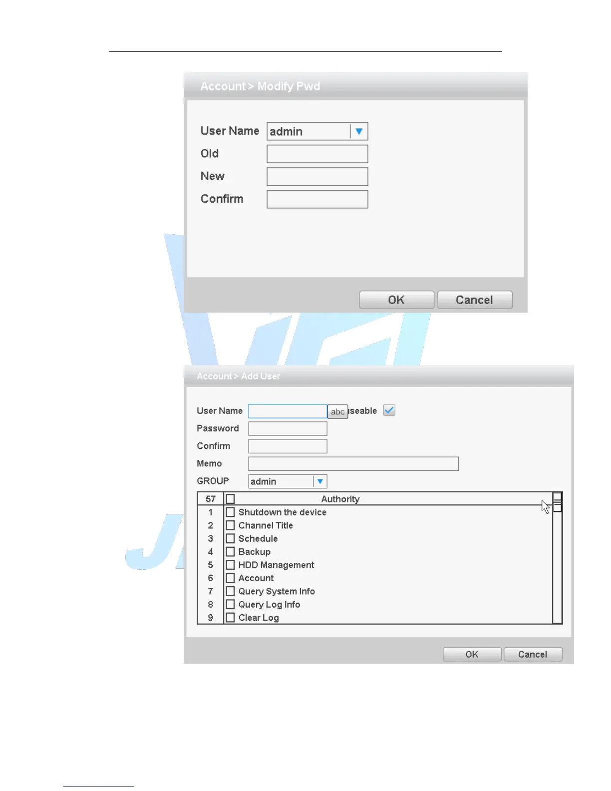 [Add Group]: Set the group name new user group, notes, permissions and other