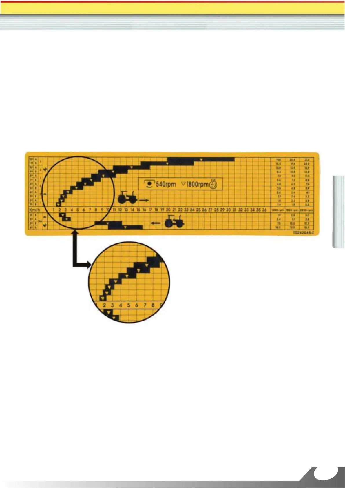 Como ejemplo, vea la calcomanía abajo, cuyo tractor libera 540 RPM en la TDP con el motor
