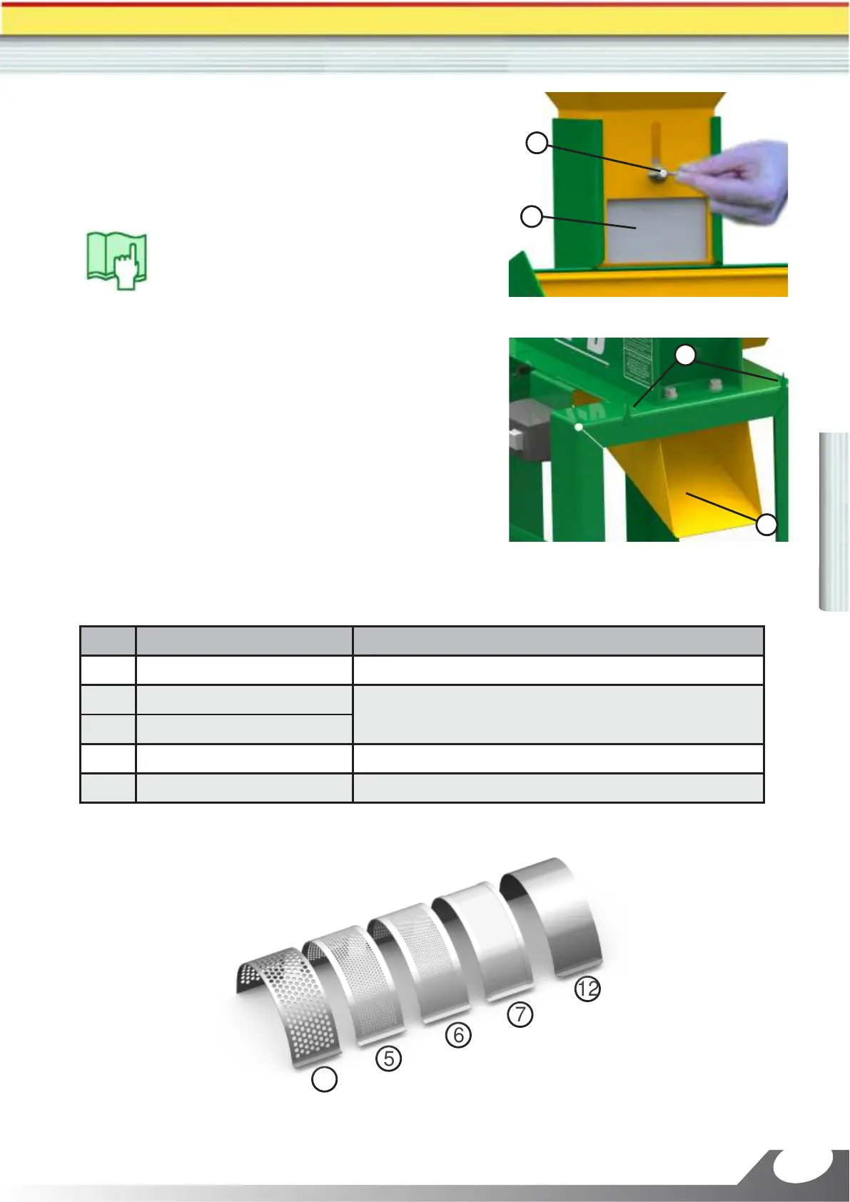 Tabla de cribas - JF 2D en la condición de desintegrador de granos
