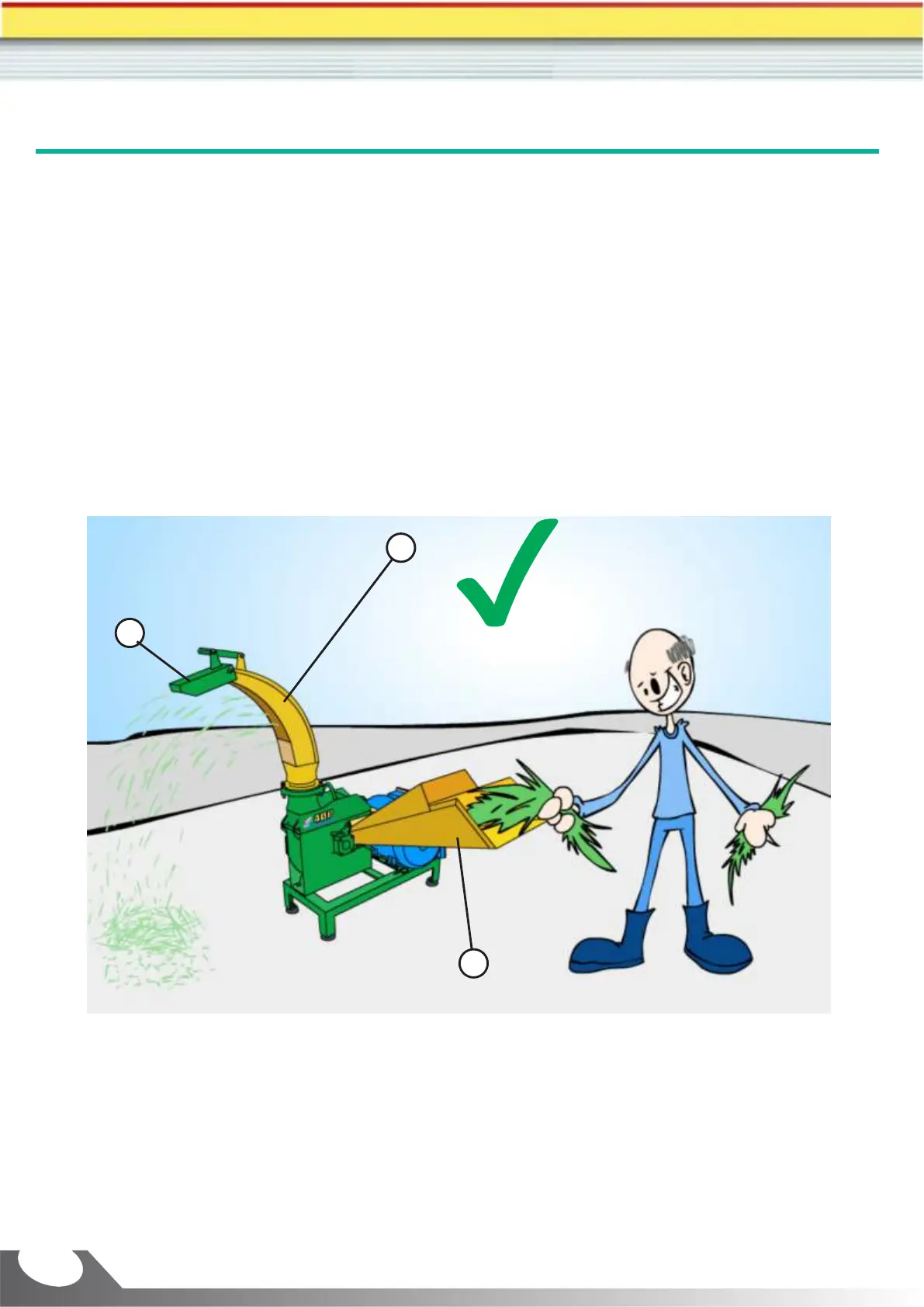 e) El chorro de forraje será arrojado por la boquilla de salida (1).