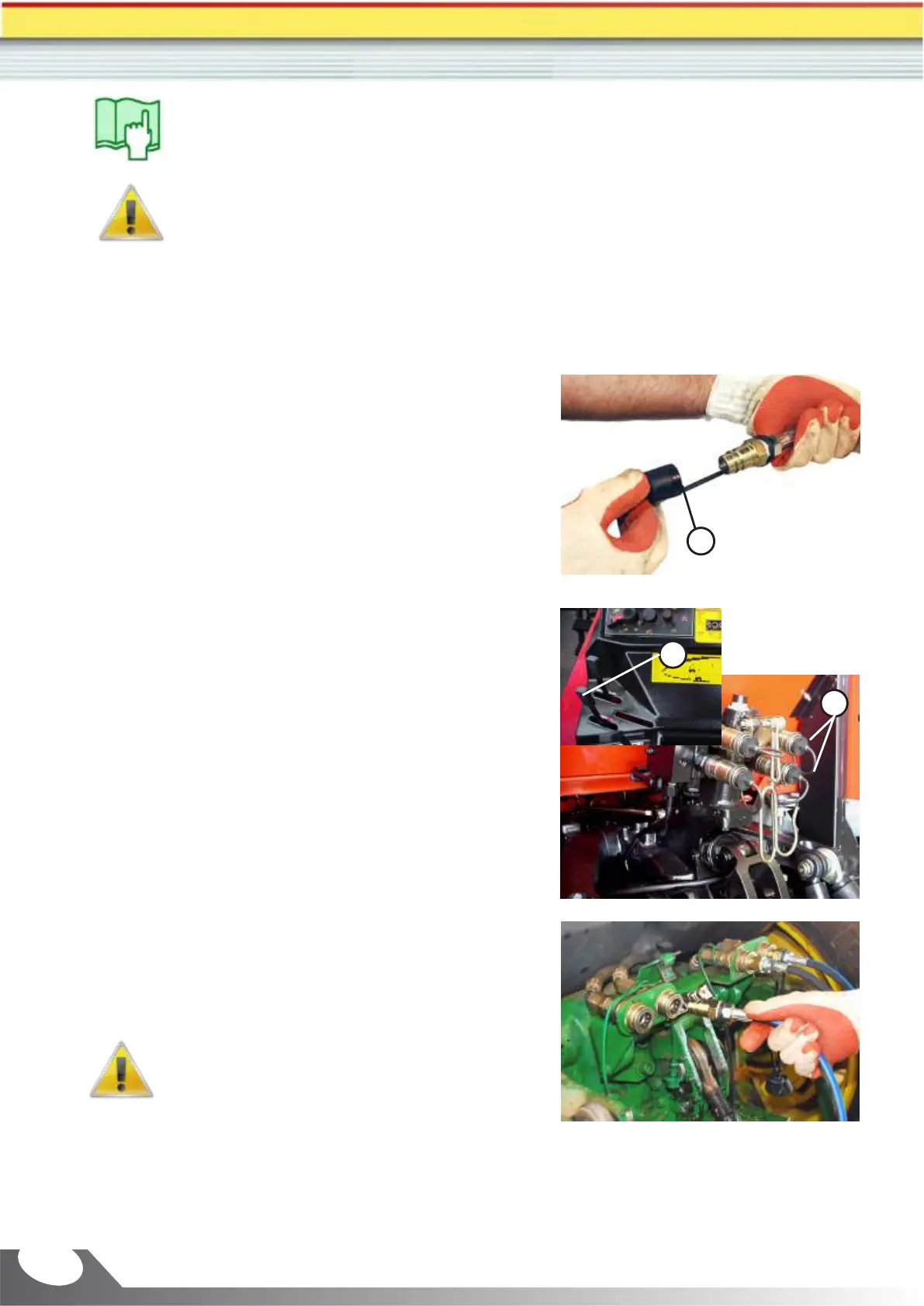 the system pressure. For that, turn the tractor off and