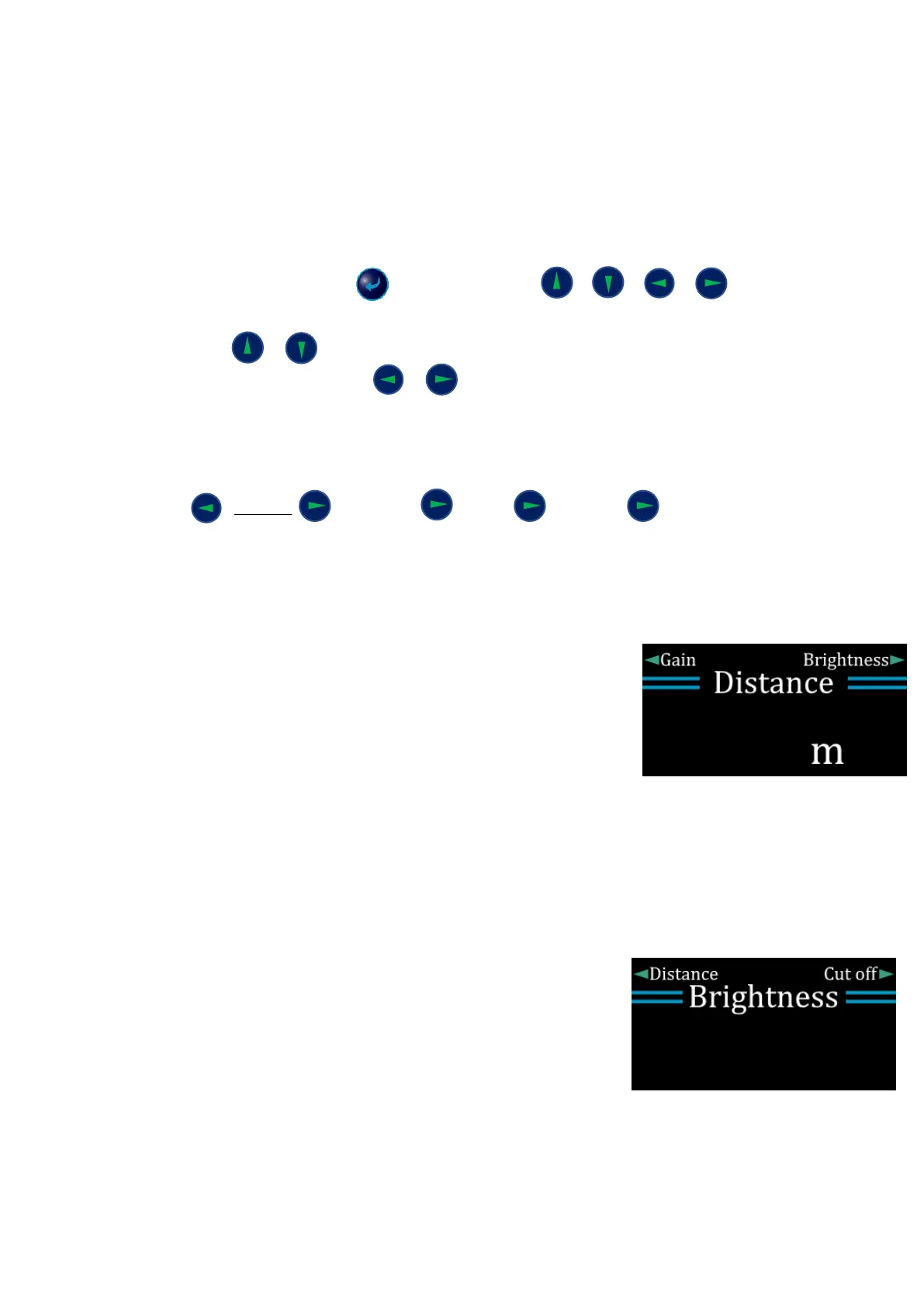 Measurement distance, gain, cutoff, threshold coefficient, and brightness of the display can be