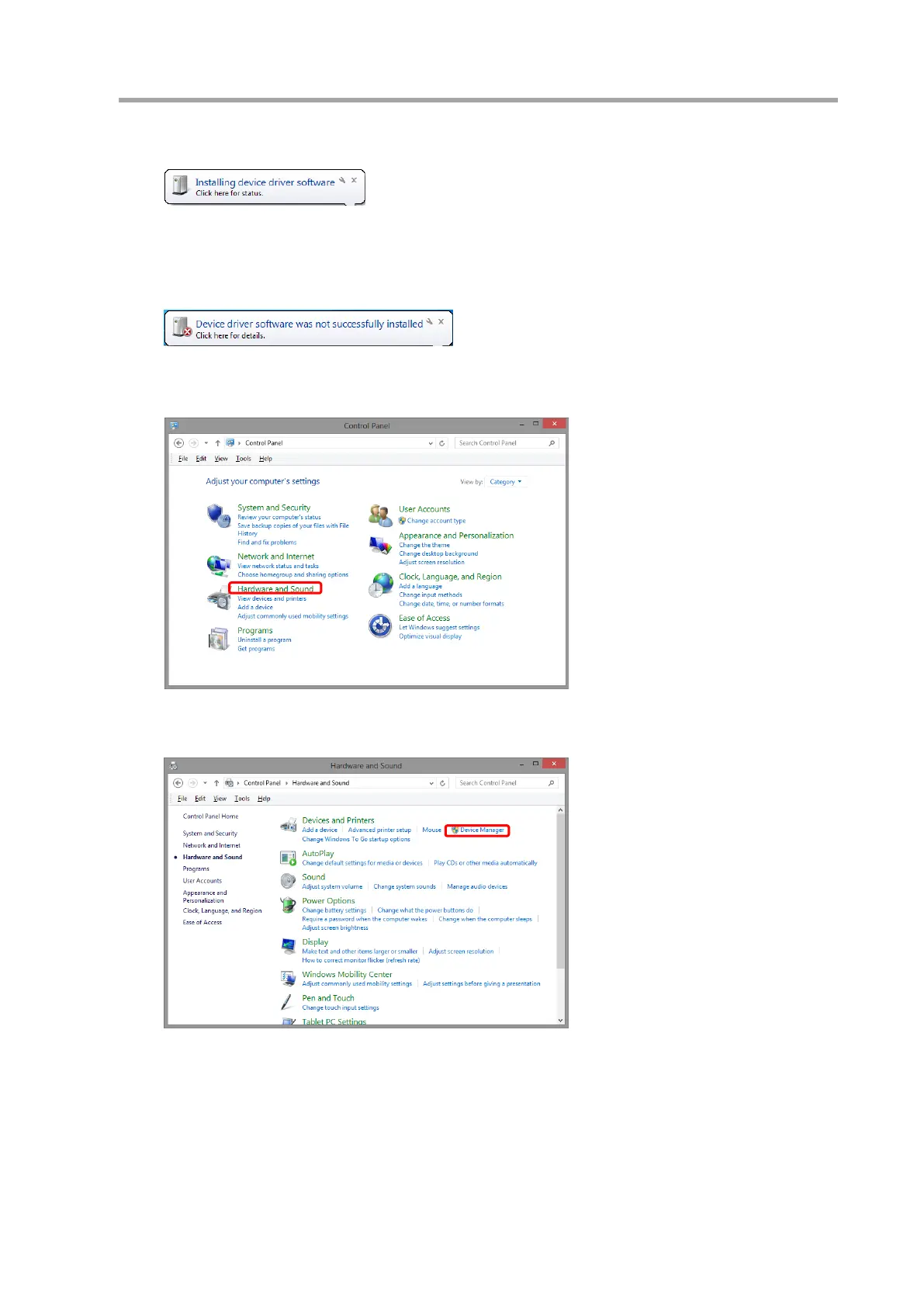 (3) Open [Control Panel] from start menu and click [Hardware and Sound].