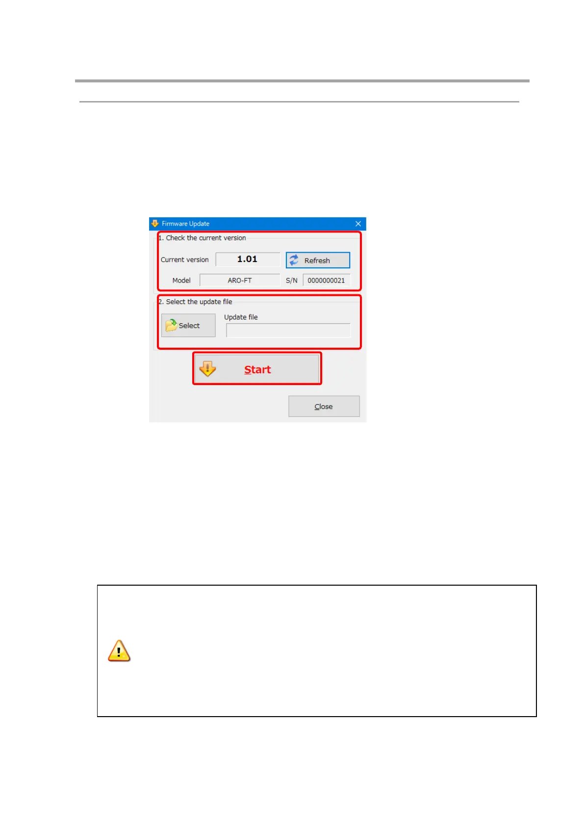 update fails, the instrument will become unusable. Update the firmware with care.