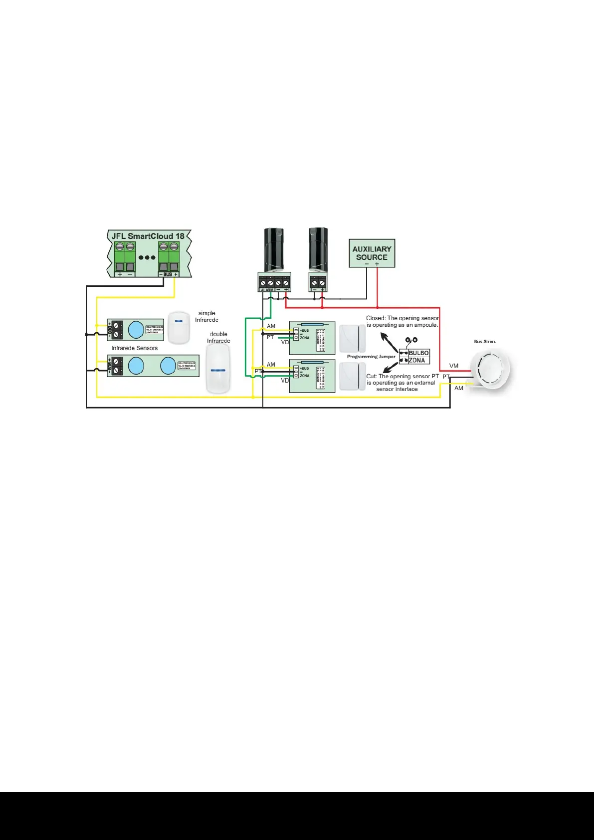 Infrared and opening sensors are powered by the bus itself. In the case of the siren, it is