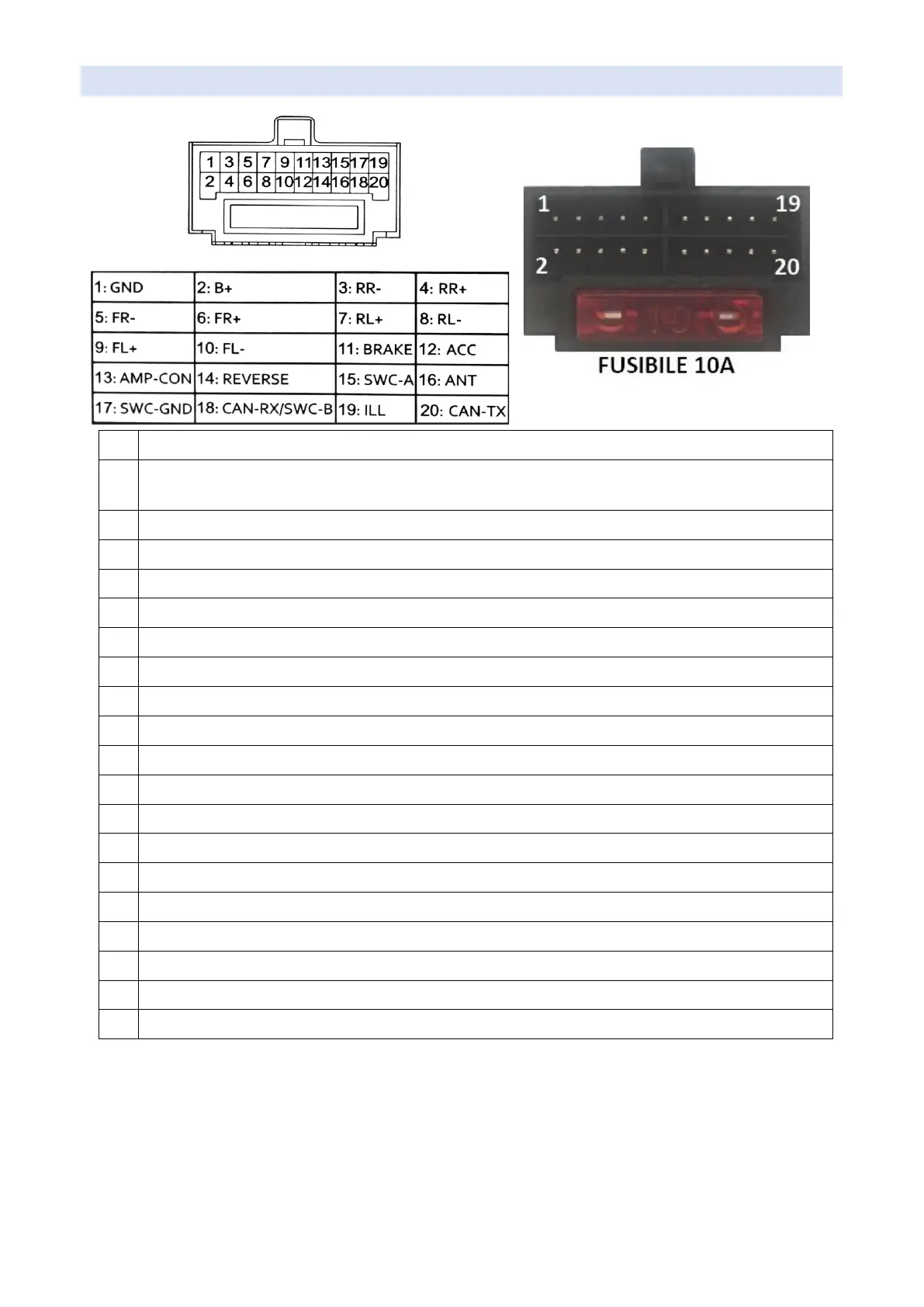 *AVERTISSEMENT : la radio s’allume et s’éteint avec le tableau du bord au moyen de la clé de contac. La connexion de ce fil