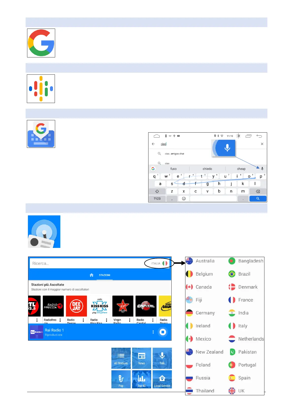 Using Google Gboard (if it is not present on the radio you can install it from the PlayStore