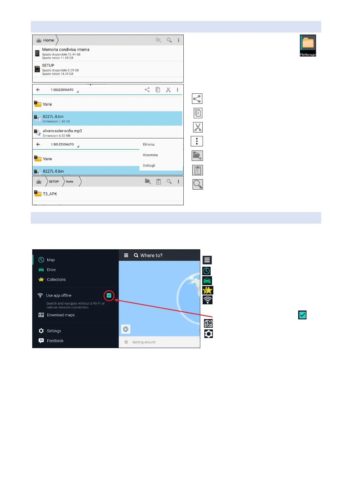slot and upload offline maps to it. To have the SD card inserted and open the settings section, select Stor-