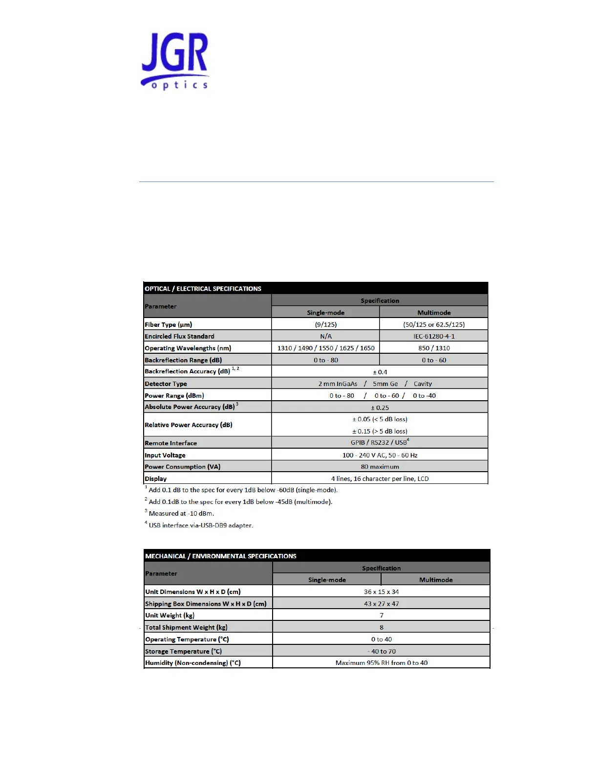 JGR MBR5 - Specifications