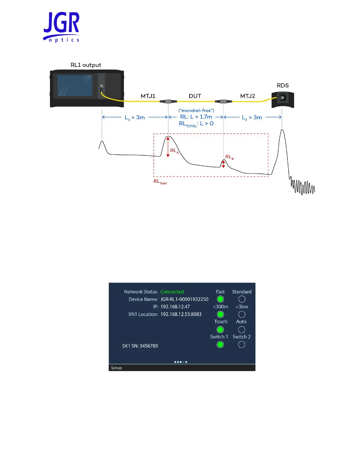 2. On the RL1 Setup page, confirm the SX1 connectivity and, if the RL1 is a dual output, the switch