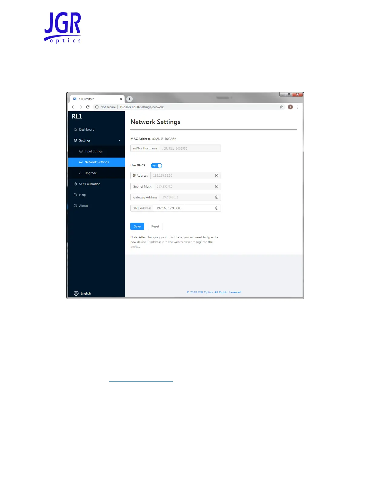 You can view, edit or reset the network settings of the RL1 from the Settings > Network Settings tab (Figure