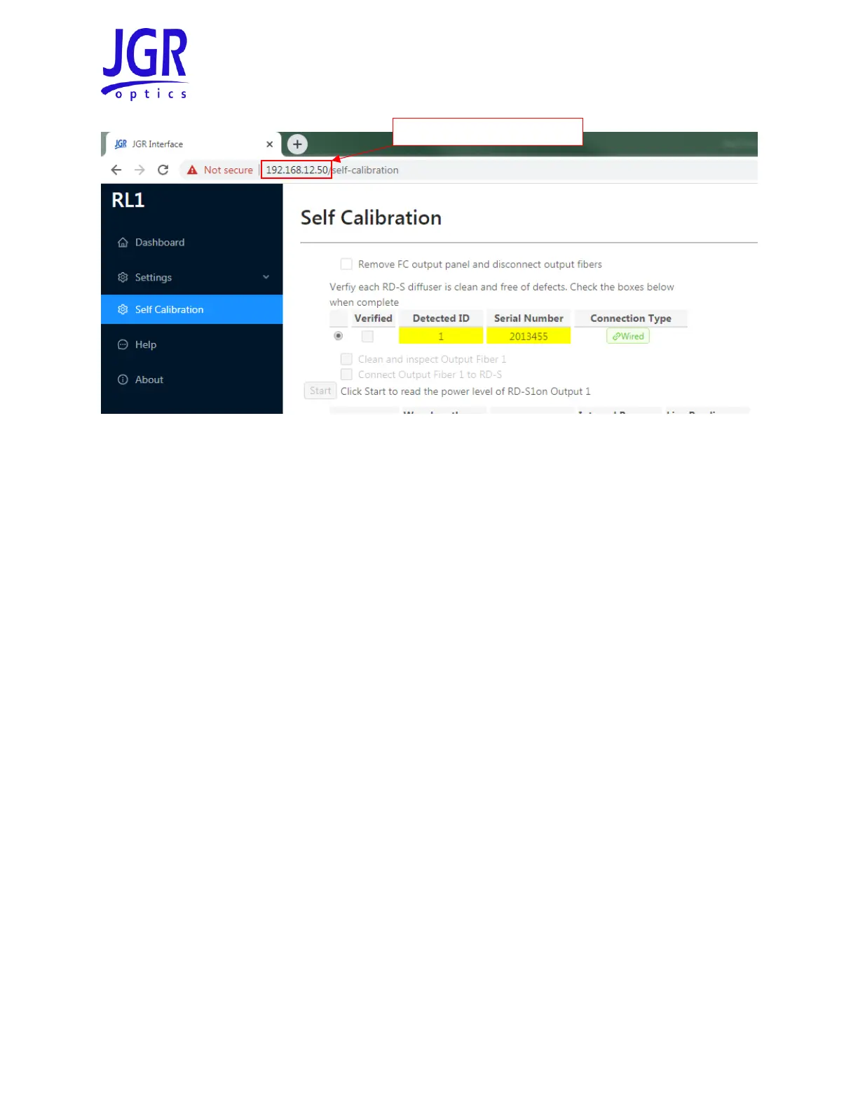 Figure 21: Accessing the RL1 self-calibration tab of the webpage