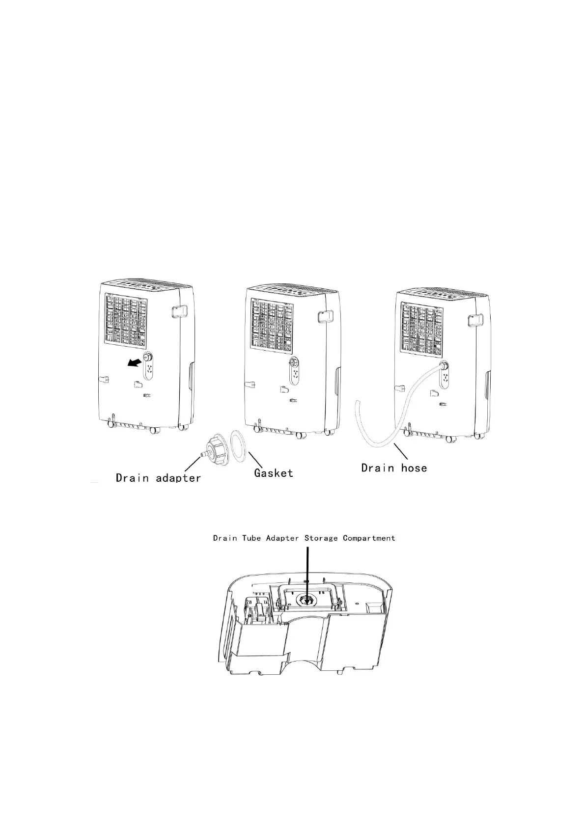 included gasket into the Drain Adapter, then force the Drain Hose onto the Drain Adapter and turn