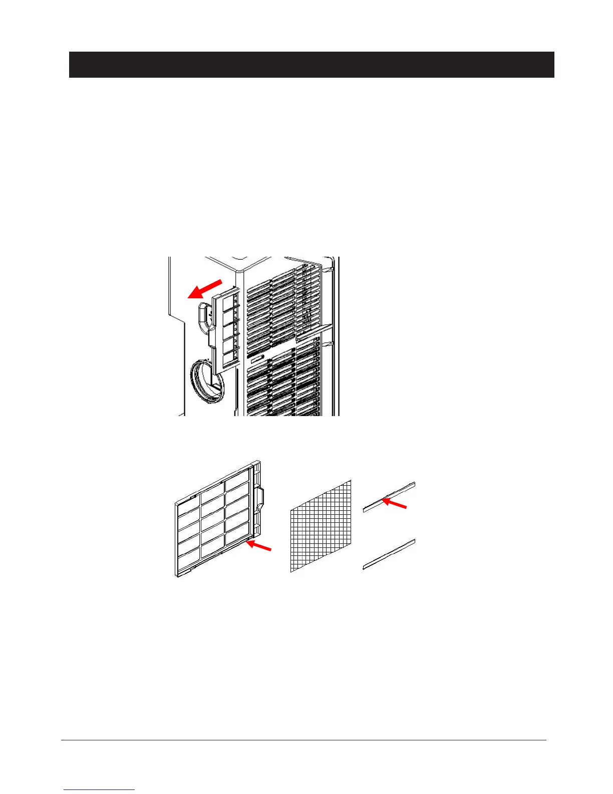 b. Slide out filter frame from the unit and remove the filter fixer.